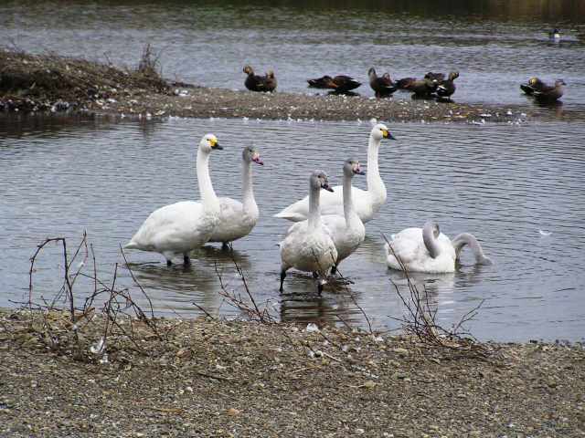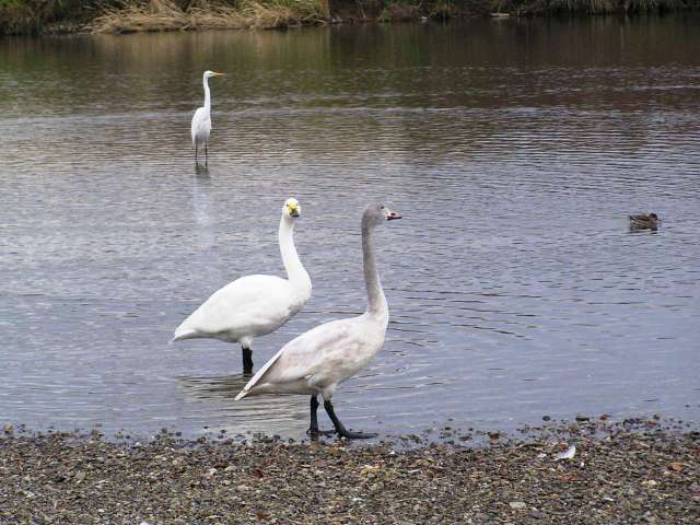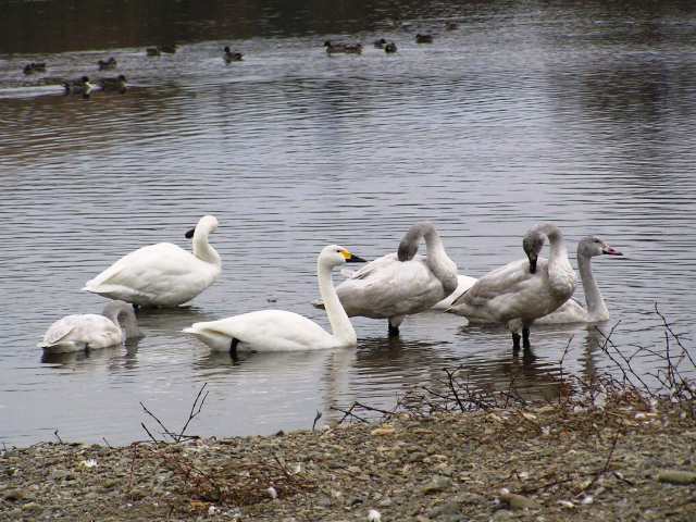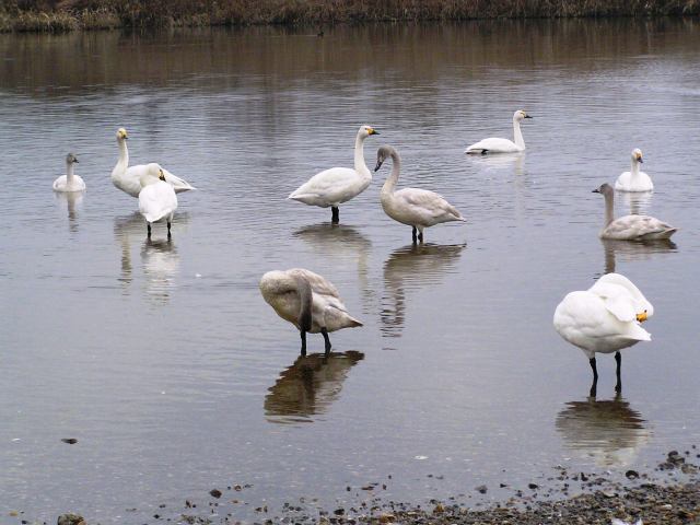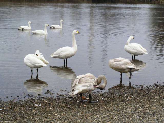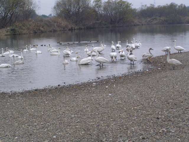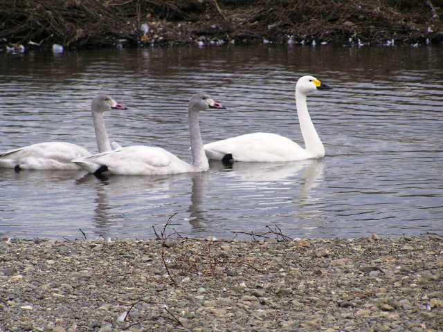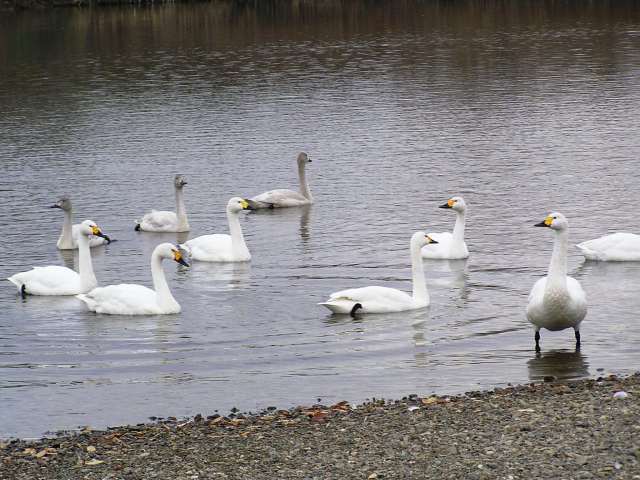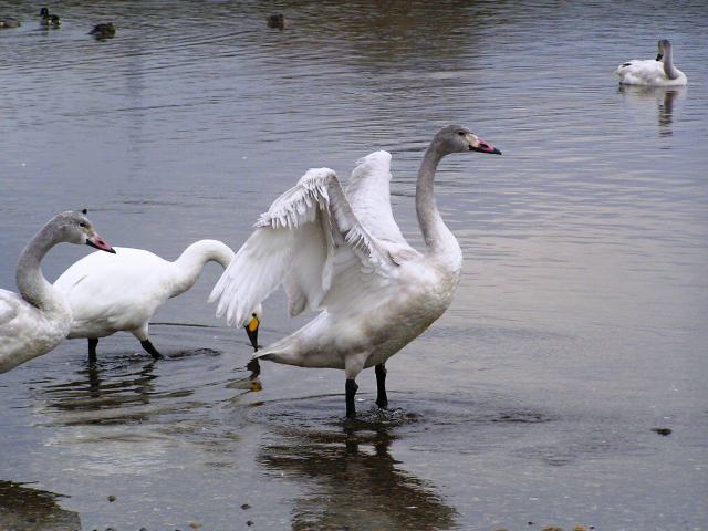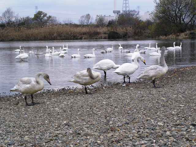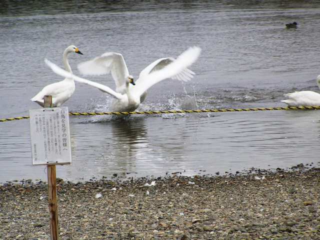 地元の「白鳥を守る会」では午前10 時と午後3時の2回餌付けをしています。
